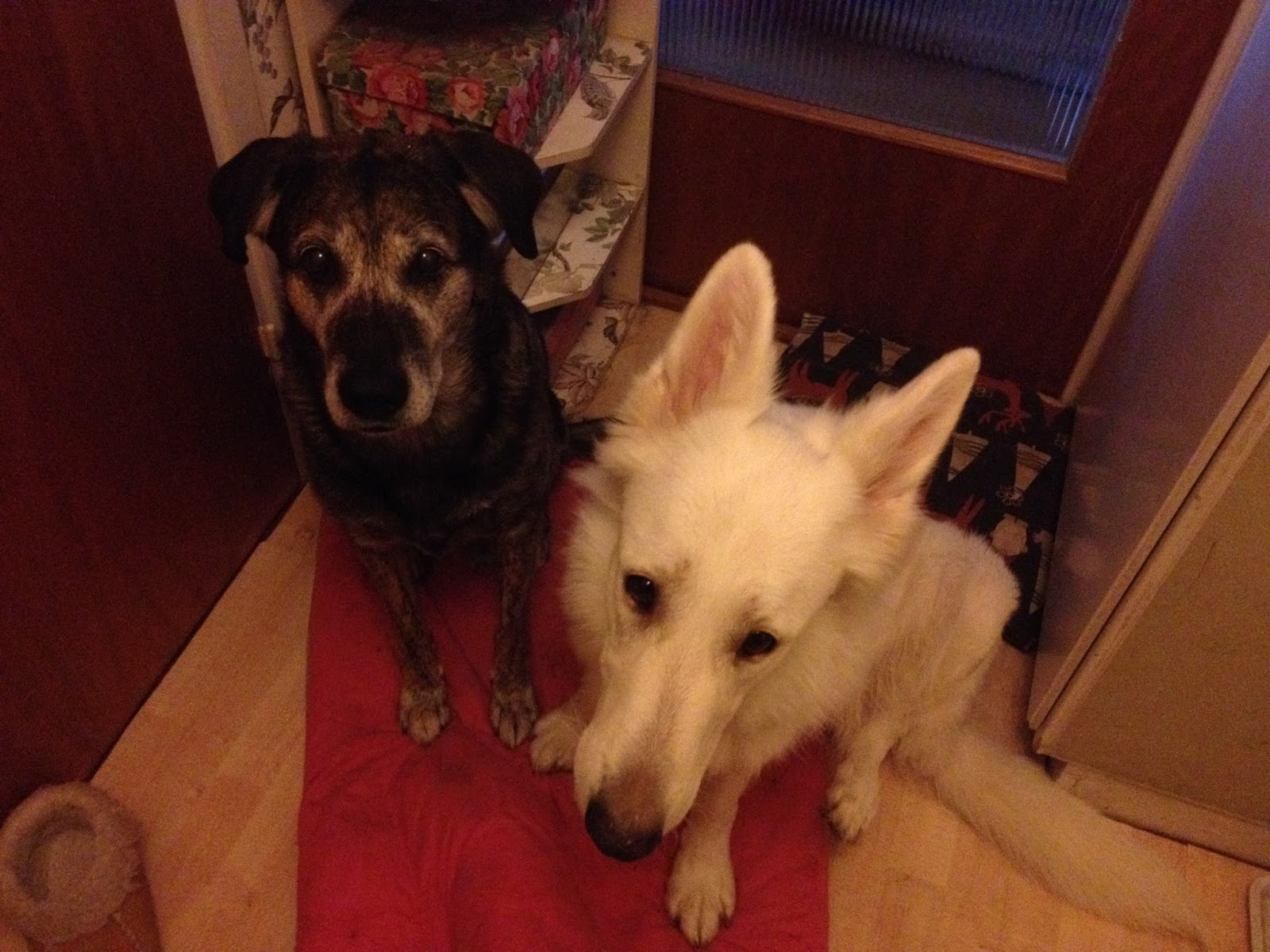 Idag har jag varit hundvakt åt syrrans och svågerns två hundar. De fick följa med mig hem från syrran igår kväll och sedan hämtade hon dem i kväll.