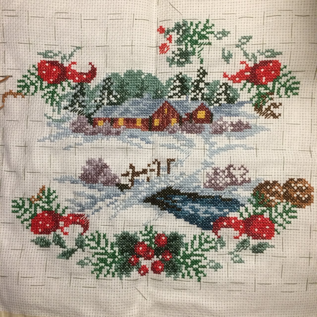 Idag har jag broderat en del. Bland annat har mitt julprojekt fått lite mer grankvistar...