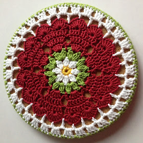 De senaste dagarna har jag virkat grytunderlägg, eller rättare sagt jag har virkat överdrag till IKEAs billiga underlägg av kork.